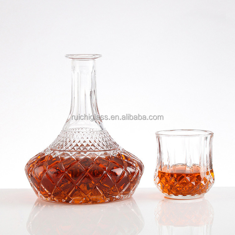 Novo de alta qualidade em relevo luxuosa garrafa de whisky de vidro garrafa de espírito